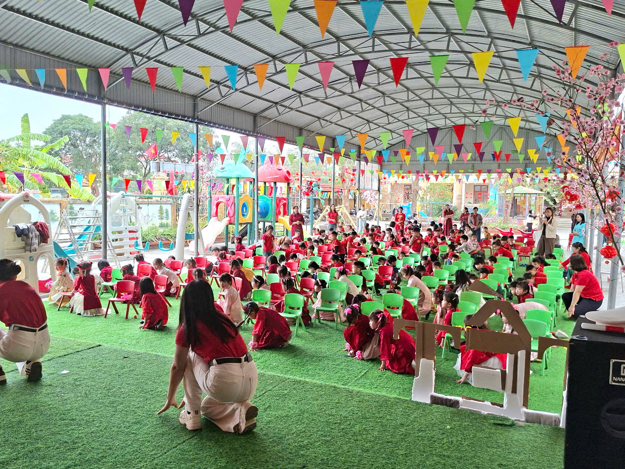 trình được tổ chức nhằm giúp trẻ hiểu hơn về ý nghĩa ngày Tết cổ truyền của dân tộc, đồng thời lồng ghép nội dung giáo dục an toàn giao thông trong dịp Tết, góp phần hình thành cho trẻ những thói quen, hành vi đúng ngay từ nhỏ. Thông qua các tiết mục văn nghệ, tiểu phẩm, trò chơi giao lưu, các bé được tiếp cận nội dung an toàn giao thông một cách nhẹ nhàng, sinh động, phù hợp với lứa tuổi.