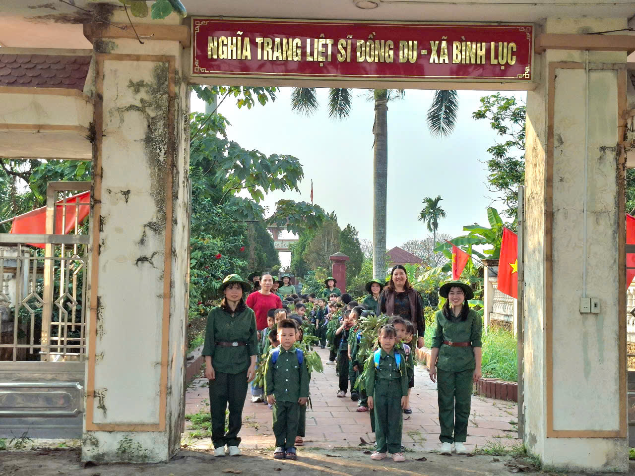 Điểm nhấn ý nghĩa của chương trình là hoạt động thăm và dâng hương tại Nghĩa trang Liệt sĩ. Dưới sự hướng dẫn của các cô giáo, các bé đã xếp hàng ngay ngắn, nghiêm túc dâng hương tưởng niệm, lắng nghe những câu chuyện giản dị về sự hy sinh anh dũng của các anh hùng liệt sĩ. Qua đó, các bé được giáo dục truyền thống “Uống nước nhớ nguồn”, hình thành thái độ kính trọng và lòng biết ơn đối với những người đã ngã xuống vì Tổ quốc.